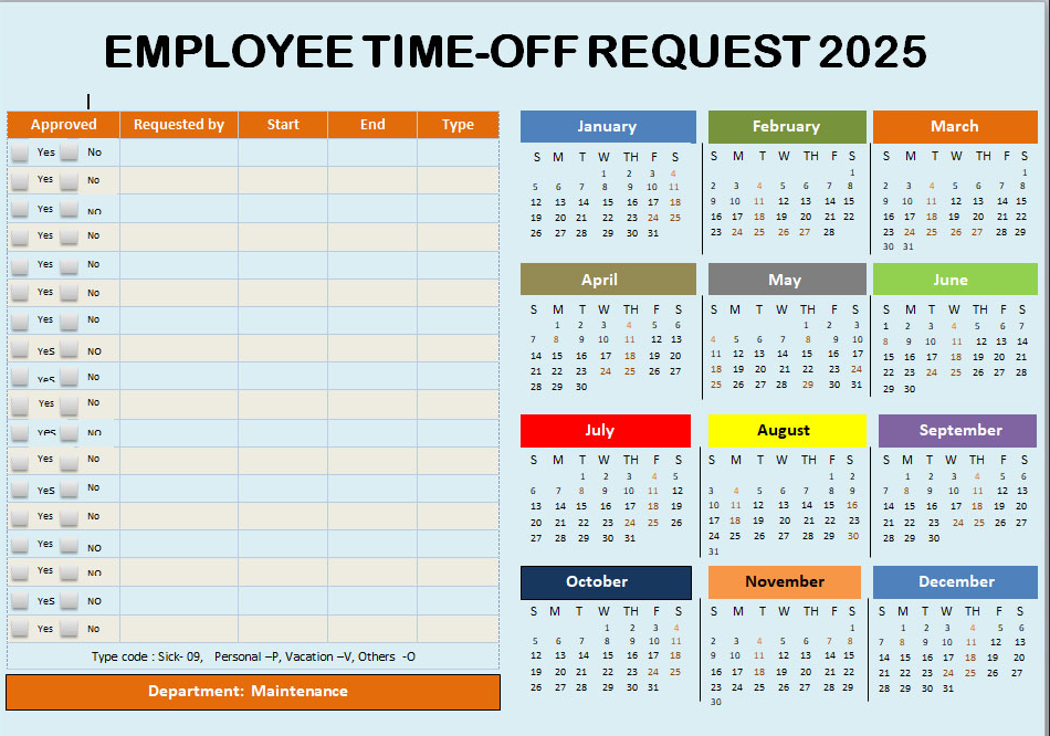 This template provides a systematic and organized approach to record and monitor employee leaves, making it easier for HR departments and managers to keep track of employee attendance and ensure compliance with company policies.