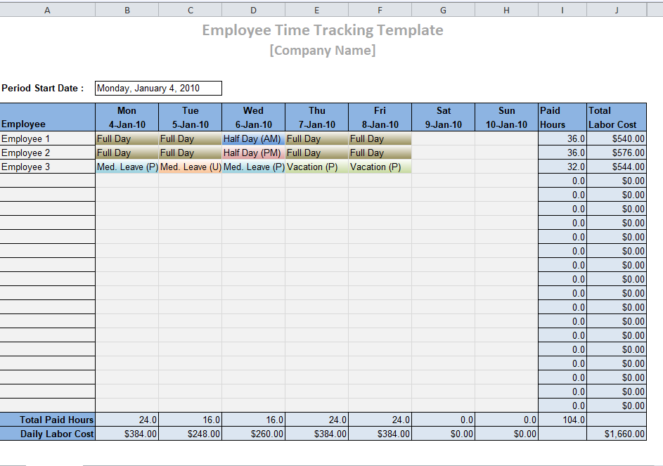 The Excel template typically consists of several columns that capture essential information such as the employee’s name, date, start time, end time, and total hours worked.