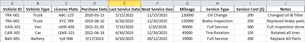 Besides if you wish to design your own Fleet Maintenance Spreadsheet you can add as many records as you want.