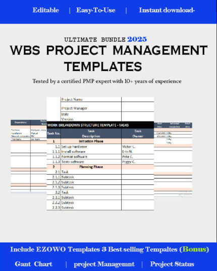 A WBS is a project management tool that takes a step-by-step project detail approach to execute projects This is a breakdown of of the projects' small components to properly manage the scope, budget and implementation of the deliverables. What's Included: - 100% Editable Excel sheet WBS Sections: - Project Title - Project Manager - Start & Completion Date - Project Title - Activity Title - Tasks - Subtasks